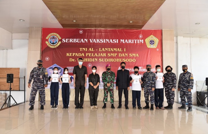 Danlantamal I yang mengamati Wadan Lantamal I kegiatan mendapatkan kembali dari Kolonel Marinir Amir Kasman menambahkan bahwa sekitar 600 pelajar Dr. Wahidin Sudiro Husodo yang berumur 12-18 tahun berumur 12-18 tahun Tim vaksinator Lantamal I, ini terus dilaksanakan kepada pelajar dan masyarakat maritim Be, Perhatian TNI AL terhadap permintaan dari masyarakat terutama sekolah-sekolah langsung direspon oleh TNI AL Lantamal I, begitu juga terhadap pelajar yang berharap agar pembelajaran tatap muka di sekolah dapat segera dilaksanakan.