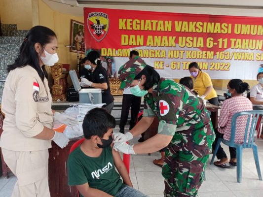 “Hari ini kita gelar Vaksinasi untuk masyarakat umum dan anak usia 6 sampai 11 tahun bahkan kita siapkan Vaksinasi Booster untuk masyarakat yang sudah menerima Vaksinasi tahap I dan tahap II serta Booster,” Jelas Dandim Haruna.