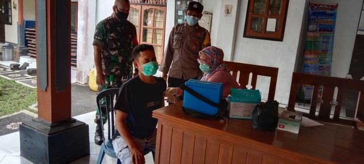 Persindonesia.com Jembrana – Babinsa Desa Tegalbadeng Barat Koramil 1617-01/Negara Serda Sahnir bersama Bhabinkamtibmas memberikan pendampingan kepada Tim Vaksinator saat berlangsungnya vaksinasi Covid-19. Vaksinasi yang berlangsung di Aula Kantor Desa Tegalbadeng Barat, Kecamatan Negara, Kabupaten Jembrana tersebut merupakan vaksinasi tahap ketiga (Booster) yang diberikan kepada lansia dan masyarakat umum, Sabtu (04/06/2022).