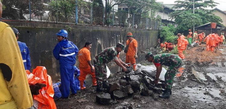 Persindonesia com Kodim 0505/Jakarta Timur- Koramil 06/Cakung Kodim 0505/Jakarta timur Bekerja sama dengan Muspika kecamatan Cakung melaksanakan kerja bhakti pembersihan lingkungan bertempat di Jln. Raya Bekasi KM. 17 RT 01/01 Kelurahan Rawa Terate Kec. Cakung, Minggu (12/02/23).