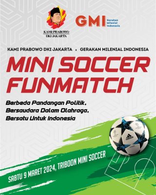 Jakarta,Persindonesia.com–Ditengah kompleksitas lanskap politik yang sering kali memecah belah Indonesia, Organisasi Kami Prabowo DKI Jakarta, serta Gerakan Milenial Indonesia mengadakan kegiatan silahturahmi dalam olahraga di Triboon Mini Soccer, Cilandak Timur, Jakarta Selatan pada Sabtu, (09/03/2024)