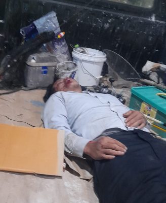 Tampak juga sebagaian warga berinisiatif menghambat kendaraan lain yang melintasi dengan memberikan peringatan himbauan terhadap kendaraan yang melintasi agar berhati hati.