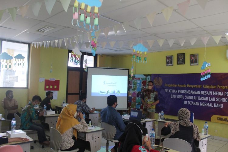 Surabaya,Persindonesia,- Program Vokasi Universitas Negeri Surabaya mengadakan Program Pengabdian Kepada Masyarakat (PKM) di SD Lab School Unesa 2 pada tanggal 15-16/10/21. Tim PKM diketuai oleh Asidigisianti S.P, S.T., beranggotakan Dr. Martadi, M.Sn, Winarno, S.Sn., M.Sn dan Kanya Catya, S.T., M.A, serta Mahasiswa Program Vokasi D4 Desain Grafis yang dilibatkan diantaranya Cristina Handayani, Maharani Kidung Pertiwi dan Ardhi Athallahfi.