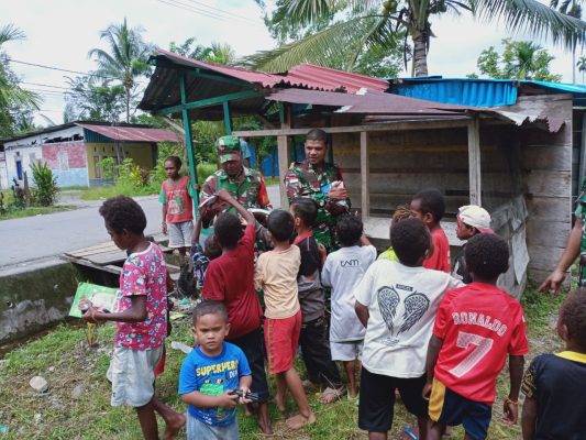 Persindonesia.com Timika – Babinsa Koramil 1710-02/Timika dipimpin Serda Hermanto dalam kegiatan Binternya hari ini melakukan pembagian alat tulis kepada anak-anak Sekolah Dasar di wilayah binaan Kel. Kamoro Jaya, Distrik Wania, Kab. Mimika, usai mereka pulang sekolah, Selasa (13/06/2023).