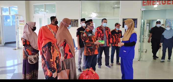 PANGKALPINANG — MPC Pemuda Pancasila Kota Pangkalpinang membagikan takjil di lingkungan RSUD Depati Hamzah Pangkalpinang, Minggu (25/04/2021)