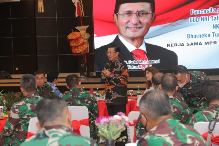 Pangdam IX/Udayana Mayjen TNI Maruli Simanjuntak, M.Sc dalam sambutannya menyampaikan ucapan terima kasih kepada Wakil Ketua MPR RI Bapak Prof. Dr. Ir. H. Fadel Muhammad yang telah menyempatkan diri untuk hadir memberikan sosialisasi 4 Pilar MPR RI di Makodam IX/Udayana, dengan harapan kegiatan ini dapat memberikan kontribusi positif bagi penguatan nilai-nilai kebangsaan.