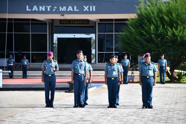 Persindonesia.com Mempawah, Bertempat di Lapangan Apel Mako Lantamal XII, Aspers Danlantamal XII Kolonel Laut (KH) Muhibuddin, pimpin upacara Bendera yang diikuti seluruh prajurit dan PNS jajaran Lantamal XII. Senin (11/12/2023).