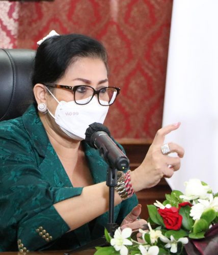 Denpasar – Ketua Umum Dewan Kerajinan Nasional Daerah (Dekranasda) Provinsi Bali Ny Putri Suastini Koster berbagi pengalaman terkait usahanya membangkitkan semangat pelaku IKM/UMKM yang terpuruk karena terdampak pandemi Covid-19. Pengalaman itu dibagikannya kepada peserta rapat koordinasi persiapan penyelenggaraan pameran online yang difasilitasi Dewan Kerajinan Nasional (Dekranas), Jumat (30/7/2021). Hadir secara virtual dari ruang kerjanya di Gedung Jayasabha, Ny Putri Koster didampingi Ketua Harian Dekranasda Bali I Wayan Jarta.