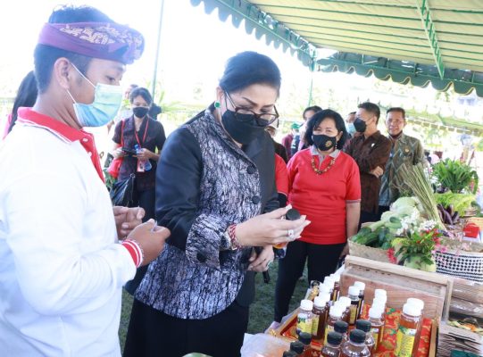 Denpasar (Persindonesia.com) – Ketua TP PKK Provinsi Bali yang juga selaku Ketua Dewan Kerajinan Nasional Daerah (Dekranasda) Provinsi Bali Ny. Putri Suastini Koster bersama jajaran pengurus kedua organisasi tersebut mengunjungi kegiatan gebyar pasar murah yang digelar serangkaian HUT ke-59 Badan Kerjasama Organisasi Wanita (BKOW) di sisi timur Lapangan Puputan Margarana Niti Mandala Denpasar, Jumat (15/4/2022).
