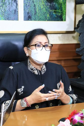 Denpasar – Ketua Umum Dewan Kerajinan Nasional Daerah (Dekranasda) Provinsi Bali Ny. Putri Suastini Koster tampil menjadi narasumber pada Dialog Indonesia Bicara TVRI Nasional yang mengusung tema ‘Selamatkan Ekonomi Kreatif di Tengah Pandemi’, Senin (12/7/2021) malam. Selain Ny. Putri Koster yang tersambung melalui aplikasi zoom meeting dari ruang kerjanya di Gedung Jayasabha, dialog yang dipandu Presenter Anisa Larasati dari Studio IV News Room TVRI Pusat Jakarta menghadirkan dua narasumber yang juga terhubung secara daring yaitu Menteri Pariwisata dan Ekonomi Kreatif Sandiaga Salahuddin Uno dan Pemerhati Koperasi dan UMKM Agus Muharram.