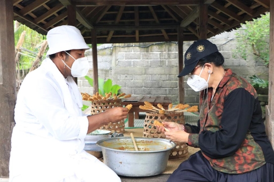 Pendamping orang nomor satu di Bali tersebut mengaku terkesan dengan tata cara pengolahan masakan khas Bali, yang keseluruhannya masih menggunakan cara tradisional seperti memanfaatkan arang, kayu bakar serta rempah-rempah lokal yang tidak ditambahkan penguat rasa.