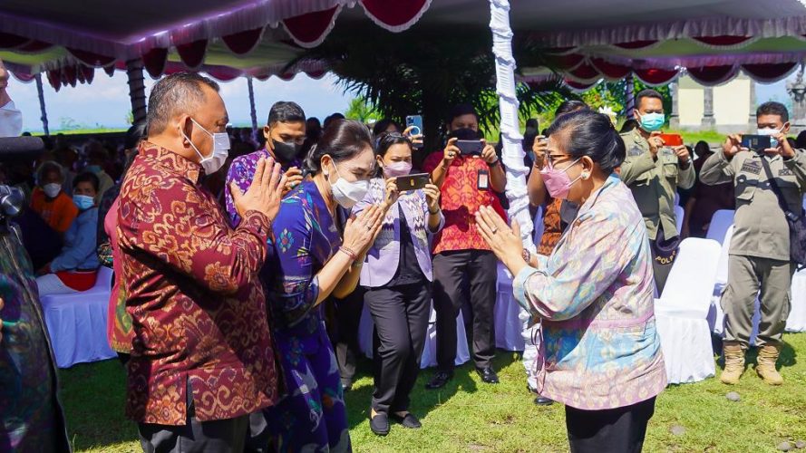 Persindonesia.com Jembrana – Ketua TP PKK Provinsi Bali Putri Suastini Koster kembali hadir di Jembrana dalam aksi sosial “Menyapa dan Berbagi” dengan masyarakat Jembrana. Kedatangannya kali ini langsung disambut Ketua TP PKK Kabupaten Jembrana Ny Candra Tamba bersama Bupati Jembrana I Nengah Tamba di Wantilan Kantor Desa Candikusuma, Selasa (2/11).