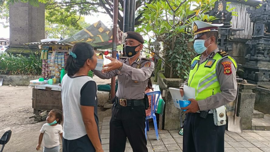 “Dalam yustisi pagi ini kami memberikan 1 kali teguran kepada warga yang tanpa masker kemudian kami berikan masker secara gratis, selanjutnya memberikan 5 kali imbauan kepada warga,” Kata Pawas I Wayan Merta Adi S.H.