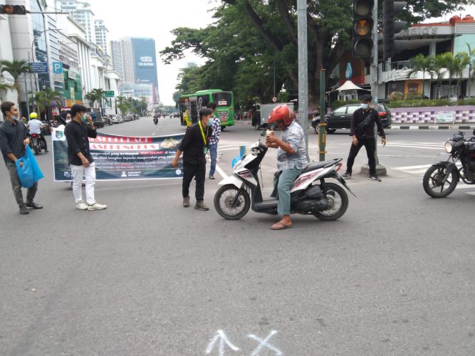 Persindonesia.com Medan – Puluhan pemuda yang tergabung dalam Koalisi Aktivis Mahasiswa Indonesia (KAMI) dan Serikat Mahasiswa Muslimin Indonesia (SEMMI) Sumut, melakukan aksi nyata, menunjukkan kepedulian terhadap masyarakat yang terkena dampak PPKM Level 4, di Kota Medan, Senin (26/7/2021).