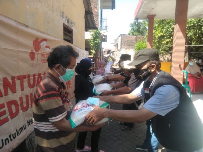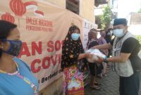 Acara Bhaksos yang juga dihadiri oleh perwakilan dari Gusdurian Yuska Harimurti dan Sekjen Jogoboyo Ainur Rohman secara simbolis membagikan beras dan masker serta hand sanitizer kepada warga.
