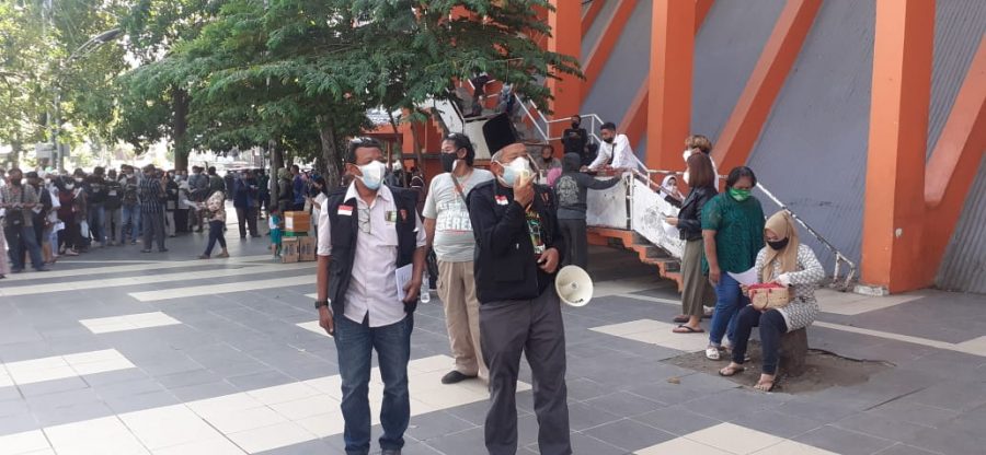Surabaya, Persindonesia,– Ormas Arek Jogoboyo menerjunkan puluhan personilnya guna membantu pengamanan dalam giat vaksinasi massal di Gelora 10 Nopember Tambaksari Surabaya, Rabu, 7/7/2021