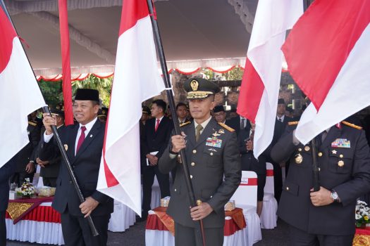 Denpasar – Pangdam IX/Udayana Mayjen TNI Bambang Trisnohadi bersama Forkopimda Provinsi Bali menghadiri Upacara Peringatan Hari Lahir Pancasila yang dipimpin oleh Pj. Gubernur Bali S.M. Mahendra Jaya, bertempat di Halaman Kantor Gubernur Bali, Renon, Denpasar, pada Sabtu (1/6/2024).