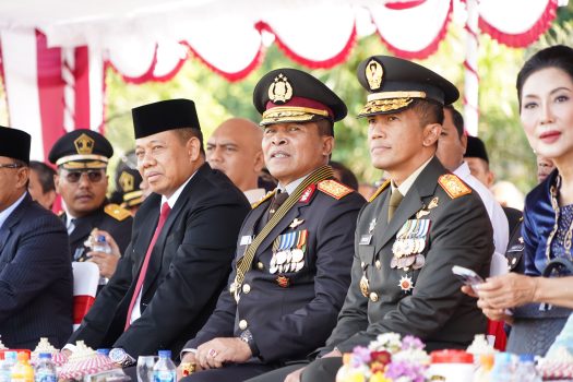 Denpasar- Pangdam IX/Udayana Mayjen TNI Bambang Trisnohadi didampingi Ketua Persit Kartika Chandra Kirana Daerah IX/Udayana Ny.Dian Bambang Trisnohadi menghadiri Upacara dan Syukuran Peringatan Hari Bhayangkara Ke 78 di Lapangan Puputan Niti Mandala Renon Denpasar, Senin 1 Juli 2024.