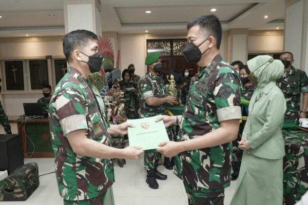 Denpasar (Persindo) – Guna meningkatkan kualitas kinerja dan produktivitas satuan serta pengembangan karir para perwira TNI AD, Pangdam IX/Udayana Mayjen TNI Sonny Aprianto, S.E., M.M., pada Rabu (16/03/2022) memimpin Serah Terima Jabatan (Sertijab) Danrem 163/Wira Satya, dari Brigjen TNI Husein Segaf, S.H., kepada Kolonel Inf Choirul Anam, S.E., M.M.