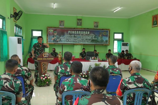 Selanjutnya Prajurit Kodim 1616/Gianyar sebagai Aparat Komando Kewilayahan (Apkowil), Pangdam memerintahkan harus bisa mengatasi kesulitan rakyat yang berada di wilayah binaannya dan jangan membuat masyarakat menjadi lebih susah, karena masyarakat Gianyar sebagian besar terjun di sektor pariwisata sangat merasakan dampak pandemi Covid-19.