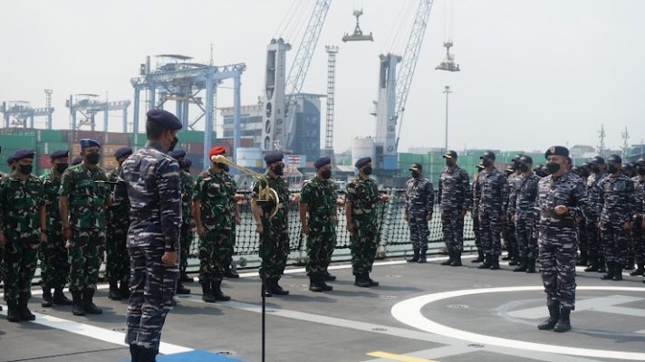 Persindonesia.com Jakarta- Pangkoarmada I, Laksda TNI Arsyad Abdullah, memimpin upacara menyambut kedatangan duta bangsa KRI RE Martadinata-331, Satgas Multilateral Naval Exercise Milan 2022 di Dermaga JICT 2 Tanjung Priuk, Jakarta Utara, Senin (14/3/2022)