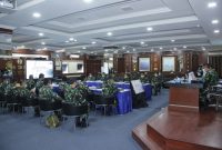 Panglima Komando Armada I (Pangkoarmada I) Laksda TNI Abdul Rasyid K., S.E., M.M. menerima Paparan Evaluasi Latihan Matra TA 2021 di Ruang Matjan Kumbang, Mako Koarmada I. Senin (26/4/2021).
