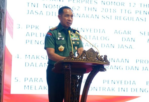 Lebih lanjut Panglima TNI menggaris bawahi agar para Pejabat Pembuat Komitmen (PPK) dan penyedia barang dan jasa dapat melaksanakan kontraknya dengan sebaik-baiknya. “Para penyedia hendaknya mengutamakan kualitas barang dan jasa dan ketepatan waktu serah terima hasil pekerjaan sesuai dengan kontrak yang telah disepakati bersama,” tegas Jenderal TNI Agus Subiyanto.
