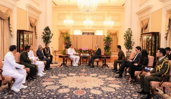Persindonesia.com Jakarta, (Puspen TNI). Panglima TNI Laksamana TNI Yudo Margono bersama Asintel Panglima TNI Laksda TNI Angkasa Dipua, Asops Panglima TNI Mayjen TNI Agus Suhardi dan Kapuskersin TNI Laksma TNI Bambang Dharmawan melakukan kunjungan kehormatan kepada Perdana Menteri Singapura Lee Hsien Long, bertempat di Istana Negara Singapura, Rabu (15/3/2023).