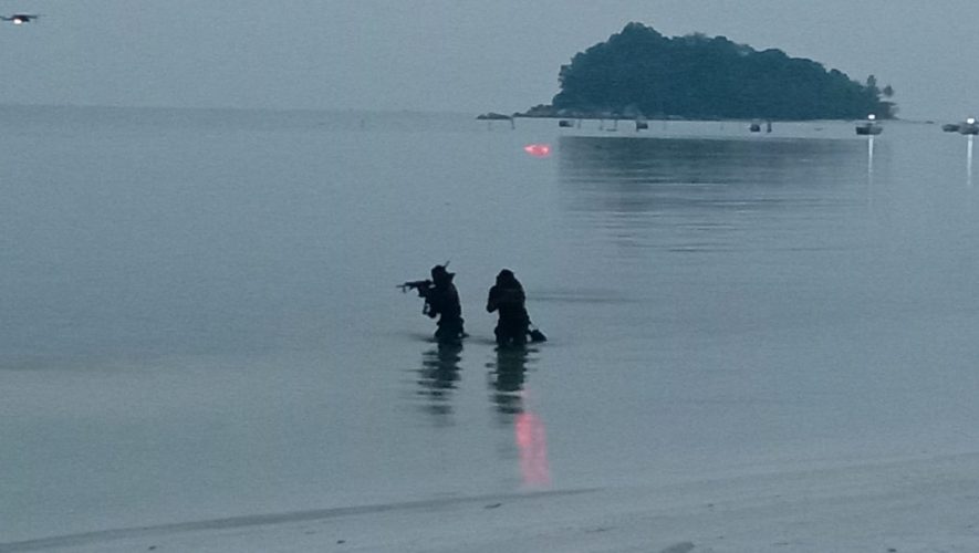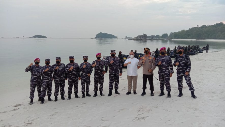 Belitung,Persindonesia.com – Danlanal Babel Kolonel Laut (P) Fajar Hernawan bersama Pangkotama TNI AL dan PJU Mabesal mendampingi KASAL Laksamana TNI Yudo Margono meninjau secara langsung latihan pendaratan khusus oleh prajurit marinir dari Pasmar 1, bertempat di Kawasan Ekonomi Khusus pantai Tanjung Kelayang Kecamatam Sijuk Kabupaten Belitung, Jum’at 08/10/2021.