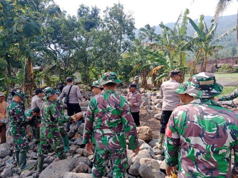 BONDOWOSO, PersIndonesia.com – Bencana banjir bandang beberapa hari yang lalu di Desa Wonoboyo Kecamatan Klabang Kabupaten Bondowoso yang menerjang rumah warga dan menyisakan lumpur dan tumpukan kayu ranting yang berserakan, akibat banjir bandang yang melanda Desa Wonoboyo ini TNI POLRI melakukan kerja bakti sosial di Desa Wonoboyo.