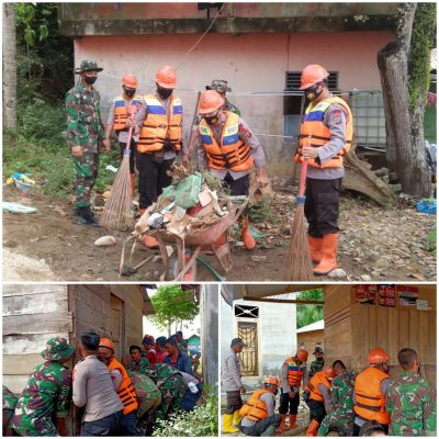 “Personil gabungan di lapangan lakukan pembersihan terhadap rumah ibadah, rumah warga sekaligus memperbaiki rumah warga yang rusak dan terseret akibat banjir di kampung sawah,” ungkap Kompol Buala Zega melalui Iptu Ridwanto Rumapea.