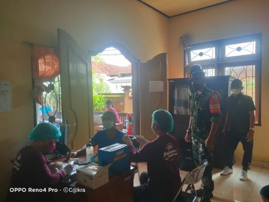 Persindonesia.com Jembrana – Babinsa Kelurahan Pendem Koramil 1617-01/Negara, Kodim 1617/Jembrana Koptu Ari Tris bersinergi dengan Bhabinkamtibmas memberikan pendampingan kepada Tim Vaksinator saat berlangsungnya vaksinasi Covid-19. Vaksinasi yang berlangsung di Kelurahan Pendem, Kecamatan Jembrana tersebut merupakan vaksinasi tahap ketiga (Booster) yang diberikan kepada lansia dan masyarakat umum, Jumat (04/03/2022).