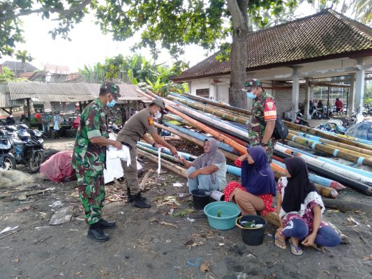 Selain menyasar Nelayan di TPI Pantai Medewi, Patroli bersama Koramil 1617-04/Pekutatan penegakan disiplin Protkes digelar di Pasar Desa Pekutatan. Disamping mengedukasi masyarakat baik pemilik warung maupun pengunjung untuk selalu waspada terhadap Covid-19, petugas juga membagikan masker secara gratis.