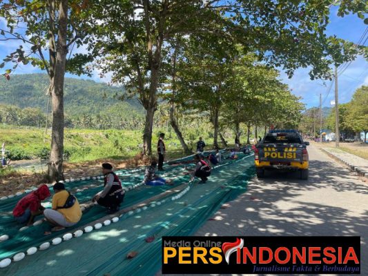 Saat melaksanakan patroli untuk memastikan Kamtibmas yang kondusif di wilayah pesisir Watulimo, menyempatkan diri mengunjungi sejumlah nelayan yang sedang sibuk memperbaiki jaring.