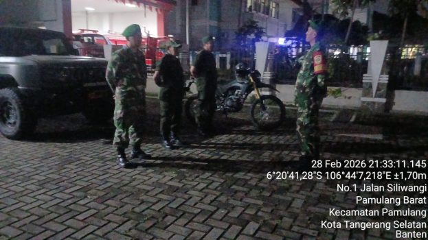 Personel Babinsa Koramil 02/Batuceper dan Koramil 08/Pamulang menggelar apel kesiapan di markas koramil sebelum menyusuri jalan protokol dan kawasan permukiman yang dinilai rawan. Tim juga mendatangi titik keramaian pada malam hari untuk memantau situasi.