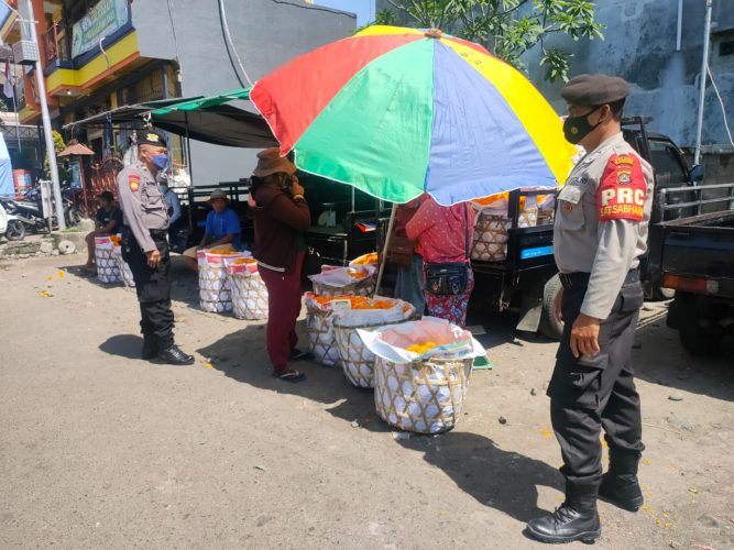 Klungkung Bali- Polres Klungkung Dalam upaya untuk lebih mendekatkan diri dengan masyarakat Unit Patroli Sat Samapta Polres Klungkung melaksanakan kegiatan patroli sekaligus sambang ke pasar Galiran memberikan himbauan Kamtibmas dan juga Disiplin Protokol Kesehatan kepada warga yang berjualan dan pengunjung di pasar, Rabu, 13/10/ 2021.