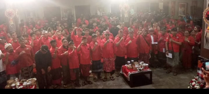 Seremonial HUT PDIP Bali ke 52 ditandai dengan pemotongan tumpeng.
