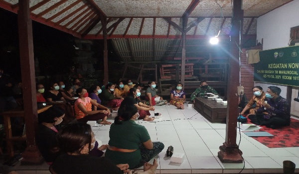 Persindonesia.com Jembrana – Kepedulian TNI dalam meningkatkank kesejahteraanmasyarakat di implementasikan dengan memberi tambahan wawasan kepada warga tentang kesehatan ibu dan anak. Melalui sasaran non fisik pada program TMMD Ke 110 Kodim 1617 Jembrana, Ibu Ibu PKK Banjar Sawe Desa Batu Agung diberikan penyuluhan (sosialisasi) KB Kesehatan.