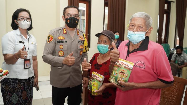 Denpasar – Kapolresta Denpasar AKBP Bambang Yugo Pamungkas S.H.,S.I.K.,M.Si. menyambangi Panti Sosial Tresna Werda “Wana Seraya” jalan Gumitir No 66 Denpasar Timur, Rabu sore ( 29/6/22) dengan di dampingi Kasat Narkoba AKP Mirza Gunawan S.I.K.