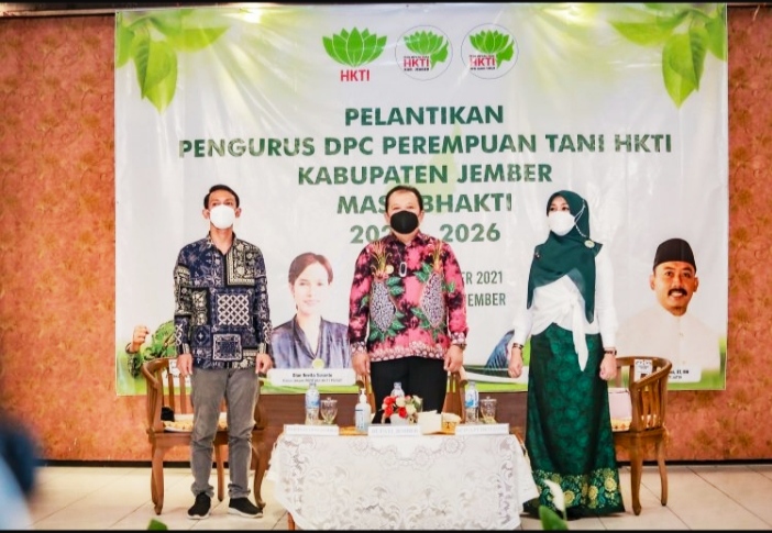 JEMBER, Persindonesia – Bupati Jember Ir. H. Hendy Siswanto menghadiri acara pelantikan pengurus DPC Perempuan Tani HKTI Jember yang berlangsung di RM Lestari Jember, Sabtu (06/11/2021).