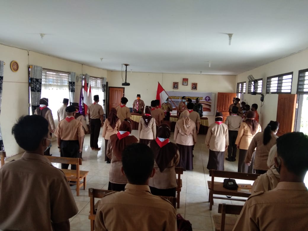 KELAPA KAMPIT — Upacara Pelantikan Pengurus Kwartir Ranting Pramuka Kelapa Kampit yang bertempat di aula SDN 03 Kelapa Kampit Kabupaten Belitung Timur,Rabu 14/04/2021 dihadiri Pelda Sudirman personil Koramil 414-05/Kelapa Kampit yang juga BaTuud.