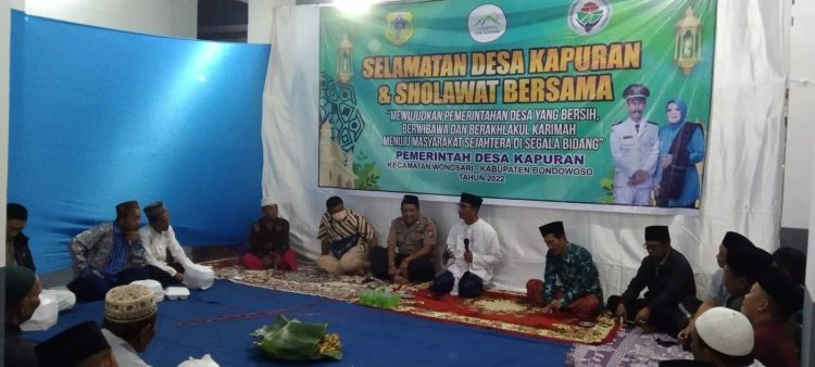 BONDOWOSO, Persindonesia – Dalam rangka mewujudkan pemerintahan desa yang bersih, berwibawa dan berakhlakul karimah menuju masyarakat sejahtera di segala bidang. Pemerintah Desa Kapuran Kecamatan Wonosari Bondowoso gelar Kegiatan Selamatan desa dan pembacaan sholawat nariyah. Jum’at malam (9/9/2022).