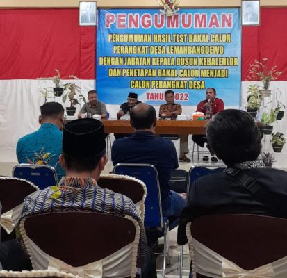 Banyuwangi, Persindonesia.com – Pemerintah Desa Lemahbang Dewo Kecamatan Rogojampi, sukses menggelar penyaringan dan penjaringan perangkat desa sesuai dengan peraturan Daerah Kabupaten Banyuwangi no 4 tahun 2022 dan Peraturan Bupati Banyuwangi no 10 tahun 2019.