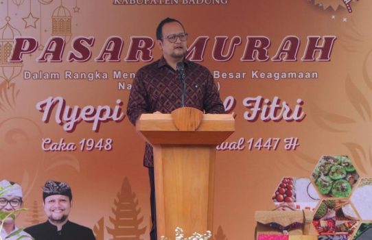 BADUNG Persindonesia.com – Pemerintah Kabupaten Badung menggelar pasar murah di Lapangan Umum Lapangan Umum Pratu I Gusti Ngurah Jana, Kelurahan Sading, Selasa (10/3/2026). Kegiatan ini dibuka langsung oleh Wakil Bupati Badung Bagus Alit Sucipta bersama Ketua **Wanita Hindu Dharma Indonesia (WHDI) Badung, Yunita Alit Sucipta, sebagai langkah menjaga stabilitas harga kebutuhan pokok menjelang dua hari besar keagamaan.