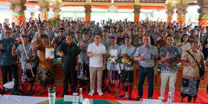 BADUNG Persindo – Pemerintah Kabupaten Badung terus menunjukkan keberpihakan nyata kepada sektor pertanian sebagai penopang ketahanan pangan daerah. Hal ini ditunjukkan melalui penyerahan premi Asuransi Usaha Tani Padi (AUTP) dan subsidi benih padi kepada para petani, yang diserahkan langsung oleh Bupati Badung I Wayan Adi Arnawa di Wantilan Balai Subak Blahkiuh, Kecamatan Abiansemal, Selasa (23/12/2025).