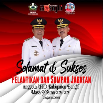 Bangli,PersIndonesia.Com- Bupati Bangli, Sang Nyoman Sedana Arta dan Wakil Bupati Bangli, Wayan Diar selaku Pimpinan Daerah Kabupaten Bangli mengucapkan selamat atas Pelantikan dan Pengambilan Sumpah Jabatan Anggota DPRD Bangli untuk masa jabatan 2024 – 2029 yang dilaksanakan pada hari Senin 12 Agustus 2024.