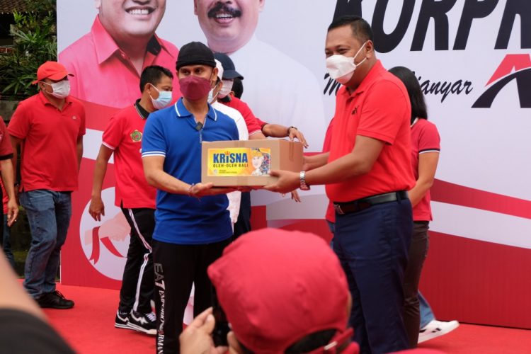 Ada suatu hal yang menarik dalam pembagian sembako kali ini, dimana biasanya sumber dana yang dipakai dalam pembagian sembako bersumber dari APBD namun kini bersumber dari penyisihan gaji Korps Pegawai Republik Indonesia (Korpri) Kabupaten Gianyar. Mengusung tema “Korpri Peduli, Korpri Berbagi Menuju Gianyar Aman” setidaknya 7.509 paket sembako yang berisikan beras, mie instan dan minyak goreng ditambah 1.000 paket sembako sumbangan dari Krisna Oleh-oleh dipastikan tersebar hari ini, Jumat (17/9).