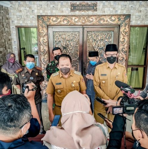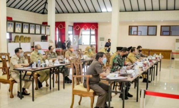 Rapat ini berlangsung secara luring di Pendopo Wahyawibawagraha dan diikuti secara daring oleh para camat, kapolsek, kepala desa, babinsa di kantornya masing-masing, Senin pagi (21/06/2021).