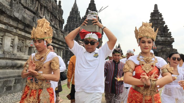 Persindonesia.com Klaten – Pemkab Jembrana turut serta dalam prosesi upacara penyucian Abhiseka Candi Prambanan ke 1.167 di halaman I Candi Prambanan, Kabupaten Klaten, Jawa Tengah, Minggu (12/11).
