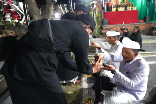 Persembahyangan pun berjalan hikmad yang dipuput oleh Romo Sepuh Satya Bhuwana Medang Kemulan. Usai melaksanakan persembahyangan Pj. Bupati menyerahkan punia sebagai bentuk sradha bakti kehadapan Ida Sesuhunan yang beristana di Pura Medang Kemulan. (DK)